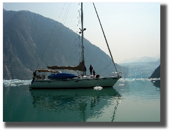 We left Portage in a thick fog and headed to Pybus Cove. My parents favorite spot. In the early morning fog we found ourselves trudging along by radar and trying to avoiding fishing vessels only to get called by one on the radio.With less than ¼ mile visibility we finally saw him heading right for us just off the right (starboard) side as we dodge him. Thank goodness for radar. These next few anchorages surround Fredrick Sound, which the books describe as the spot to see wildlife and sea life. We were not disappointed. Surrounded by a pod of Humpback whales, we slowed and swam with them for a long time. They are remarkable. It was so quiet and peaceful in the fog that you could hear every blow and breath they took. Pybus Bay has its own little resort there and a nice stream where the salmon are beginning to return to spawn a little early this year. That means fishy fishy every where and not a one to catch. They leap around you but are completely uninterested in anything you might have to offer. Tristan did fish from the shore ever so patiently and diligently and was rewarded with a big bull gill all by himself. We watched a family of about 5 brown bears frolic and play. Pybus Bay itself is gorgeous and looks like an alpine basin.