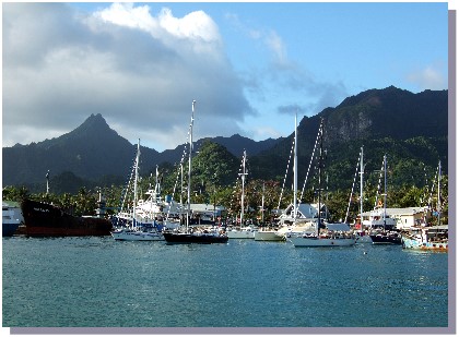 The island itself is thick with palm trees and the town very protected from what ever the weather may bring out on the ocean. The water here was clearer and more pristine than we had ever seen. The inner lagoon of the atoll even out did the Tuomotus as far as varieties of shades of blue. It was a priviledge just to witness it though we never had the opportunity to swim there.