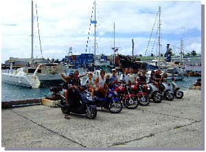 With all our buddy boats in tow, we rented scooters for the day and assaulted the island. 5 boats, 14 riders and 7 scooters. Any way you do the math = trouble. Next on the agenda was the week long Constitution celebration complete with nightly dance competitions. We took an evening and were in awe of the flurry of dancing, singing and rhythmic beats. Leave it to us as well to find the best hamburger in town, finest ice cream and much to our delight a fantastic Indian resturant at Ravitz. No stay with this fantastic fleet would be complete without a potluck and this time a wine tasting party.