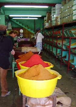 My second favorite find was this shop of open bins filled with seasoning and dried goods from Jicama to Jalapenos and beans of every kind. Though no one there spoke english and I certainly didn't know enough spanish to learn the use for each of these goods, we had a great time trying.