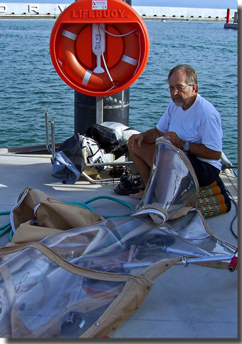 Our sail was complete but the dodger still needed a little work. With our new crew on hand, we all chipped in sewing new zippers and rigging Ohana Kai. Nonno, or Lisa's father, was working his magic with the stitch ripper. They got their exercise as well, walking to and from the grocery store with back packs full of provisions. |