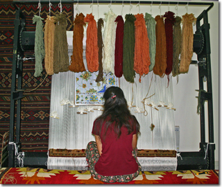 The designs and array of colors are mind boggling. The detail and beauty truly miraculous. Many of the final products are purchased in advanced and will take up to 3 years to finish. The more knots per square inch the more valuable the rug. We had the honor of viewing some with more than 100 knots per inch, each one tied by hand. Better than view them, they cover the floor with them and insist you walk all over them. The boys sprawled out and rolled around on an $80,000 dollar rug!