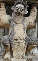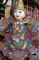 Of most interest though must be the tremendous Reclining Buddha. Said to be laying in the last position before he died with the most pleasant expression on his face. There is no angle within the room to take a complete photo of it. This statue nearly bursts out of it's temple. It is 46 meters long and 15 meters high, covered in gold leaf with eyes and the bottom of it's feet complete with intricate Mother of Pearl inlay. 108 different characteristics of Buddha or laksana shown across his feet.