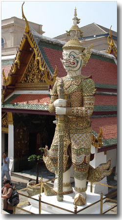Grand Palace, former residence of the monarchs. While we were visiting the country of Thailand, the King's sister had passed away. The day we chose to visit the Grand Palace they were having a wake for her so the local Thai residents could view her. The throngs of subjects there to pay their respects had to be second to that of Princess Di.