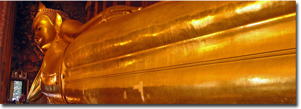 Wat Pho home to hundreds of buddha images starting with the 394 gilded images side by side surrounding the grounds displaying both Ayuthaya or Sukhothai features.