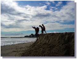 Our first stop was the famed "Wedge" which is an area known for it great strength and waves for boogie boarding and body surfing. We saw none of that the day we arrived but warm weather and plenty of sand to run and play on. It is fun to see how the sea shells and kelp are a little different on each beach we visit. |