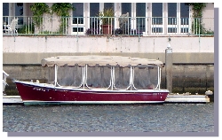 Then you can always ride around in what I call the floating golf cart. They remind Bruce of the Safari ride in Disneyland. Everyone here owns one of these and with drinks in hand, cruises around to visit each other any time day or night. Each one is decorated a little differently, adorned with lights and comfy pillows. You can even rent them. One evening some kids rented one to celebrate a birthday and mid toast, ran into the side of us. oops. |