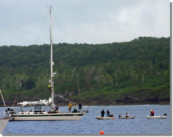 Last but not least the true spirit of sailors and cruising shines through. Fellow sailors on the s/v Sensei departed Niue for Tonga when their forestay broke hours into the passage. Thankfully with the wind in the right direction and not to much tension pulling their mast stayed in place. s/v Moorea traveling nearby came in close to follow them back to the Niue anchorage which was no easy task now beating for hours to weather and pulling in after midnight. The whole fleet rallied together and removed the damaged parts, rebuilt and helped replace it in days. |