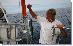 We had caught many a fish so far on this trip but this was the first one we decided to keep. A beautiful yellow fin tuna. It was a bit of a traumatic moment for all three boys as the reality of killing it came to pass, but mom said off with it's head. Two nights later it was dinner and they finally agreed it was delicious. |